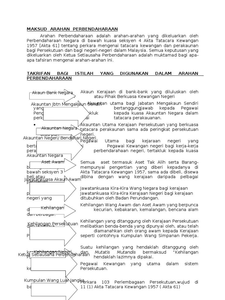 Akta acara kewangan 1957 akta 61. Akta tatacara kewangan 1957 akta 61 iaitu. Berasaskan seksyen 4 akta tatacara kewangan 1957 akta 61 arahan perbendaharaan ini menerangkan tatacara kewangan dan perakaunan yang perlu dipatuhi oleh semua pegawai pengawal atau pegawai yang diberi kuasa di mana berkaitan yang bertanggungjawab bagi perkara. Kewangan negeri yang tidak bertentangan dengan yang tersebut di atas. Wang yang dikehendaki dimasukkan ke dalam kumpulan wang itu 8.