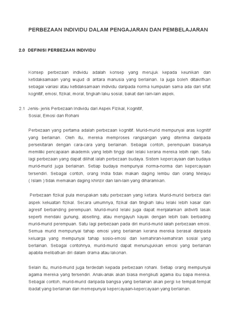Aspek aspek perbezaan individu fizikal emosi personaliti sahsiah bangsa bahasa. Kira kira 1000 sebelum masehi cina sudah melalukan tes bakat untuk mendapatkan calon orang yang menduduki jabatan pemerintahan. Slavin 1997 mengaitkan perbezaan individu dgn konteks pengajaran dan pembelajaran. Perbezaan individu nordin tahir ipgm kampus ipoh 2.
