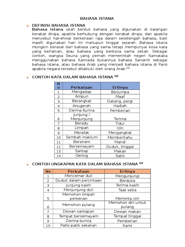 Bahasa istana mungkin berasal dari bahasa yang sama tetapi mempunyai kosa kata yang berlainan atau penggunaan bahasa yang berbeza sama sekali. Duduk dalam percintaan berduka 3. Dalam majlis itu baginda bertitah bahawa.