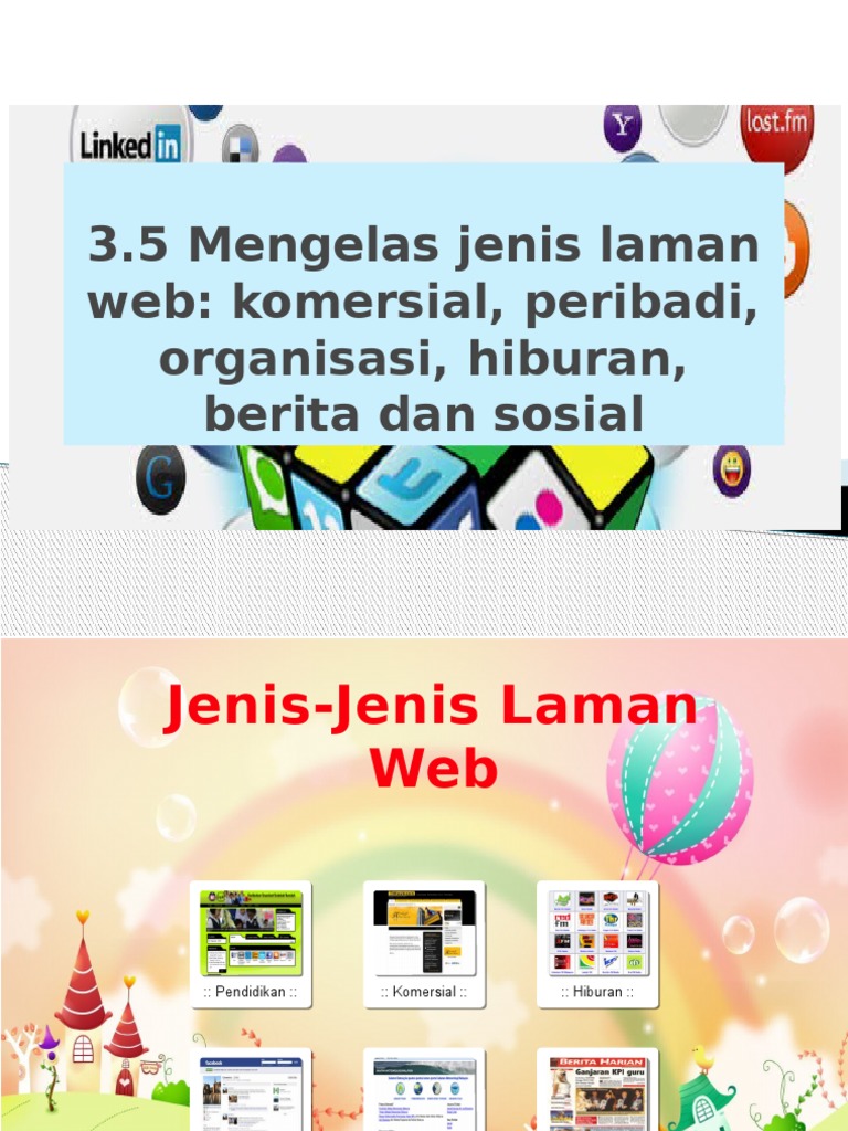Terdapat pelbagai jenis laman web dalam internet seperti laman web organisasi komersial hiburan berita dan sosial.