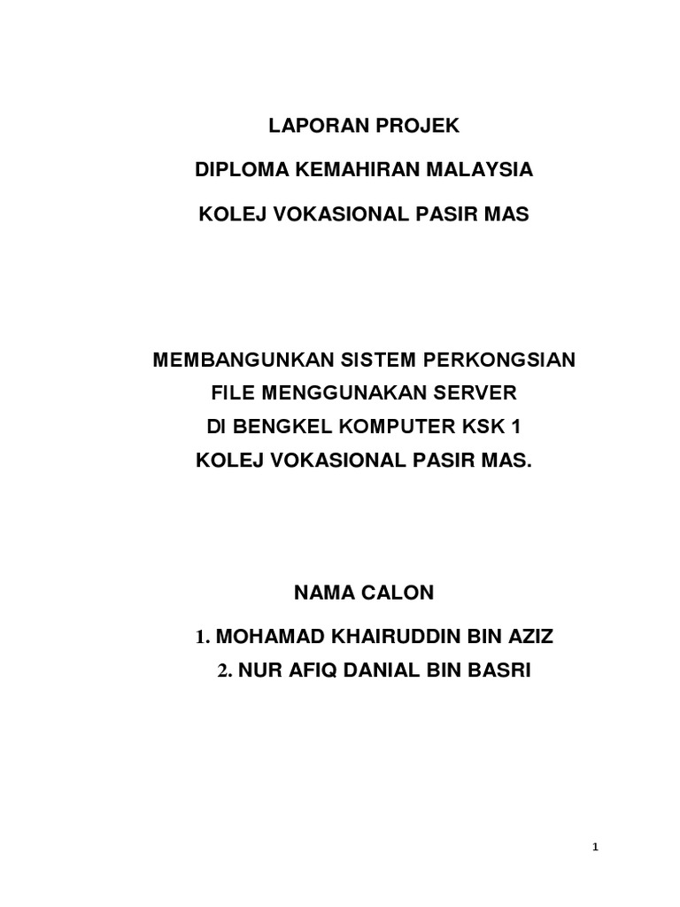 Kertas candangan projek tahun akhir 1 kolej vokasional kursus pemasaran. Penyelenggaraan berkualiti sistem komputer dan rangkaian cyber café asrama kolej vokasional pasir mas muhammad azamuddeen bin ahmad sufardy muhammad syafiq bin azman fatin nur adilah binti ahmad sulhi 2017 diploma teknologi sistem komputer dan rangkaian kolej vokasional pasir mas 2. Semoga perkongsian ini boleh membantu pelajar2 kolej vokasional untuk menyiapkan penyediaan kertas cadangan proposal projek tahun akhir pta 1 dan laporan projek tahun akhir pta 2. Untuk contoh yang saya beri adalah mengikut format dari kolej vokasional kerana saya juga adalah pelajar dari kolej vokasional.