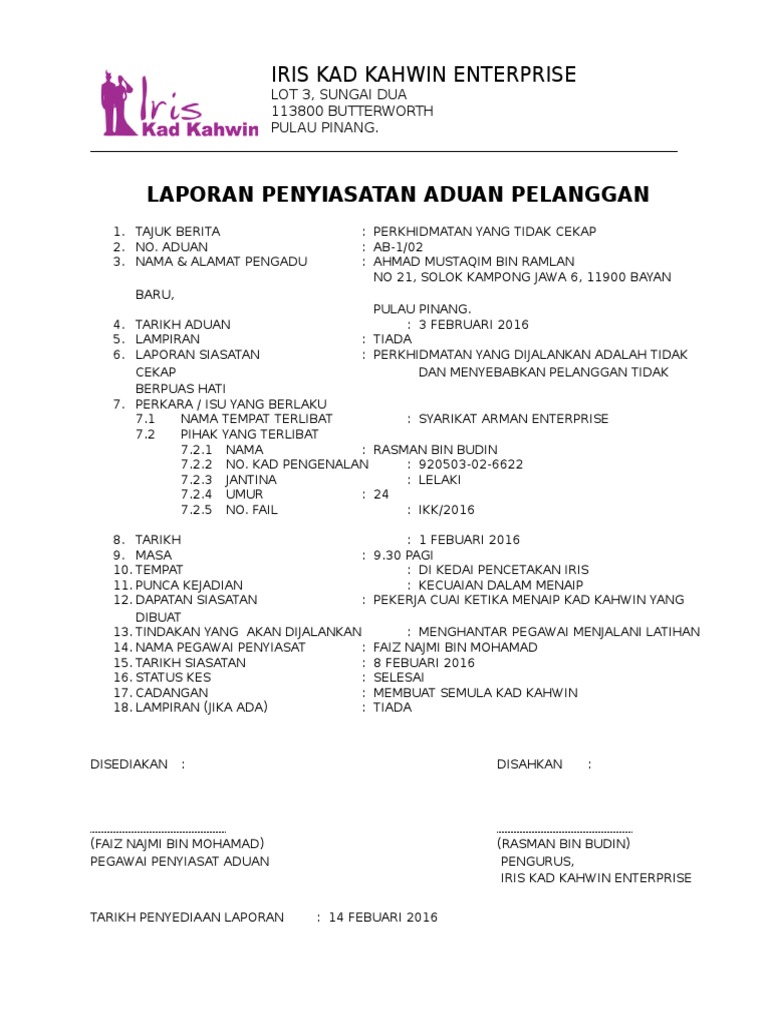 Contoh laporan siasatan dalaman contoh laporan contoh laporan keuangan contoh laporan pkl contoh laporan kegiatan contoh laporan penelitian contoh laporan prakerin contoh laporan observasi contoh laporan magang contoh laporan audit contoh laporan kkn contoh laporan perjalanan contoh laporan penjualan. Related posts to contoh format laporan siasatan dalaman contoh format laporan siasatan dalaman 2017 11 30t13 17 00 08 00 rating. Anda bisa mendownload atau mencetak gambar atau foto contoh format laporan siasatan dalaman di bawah.