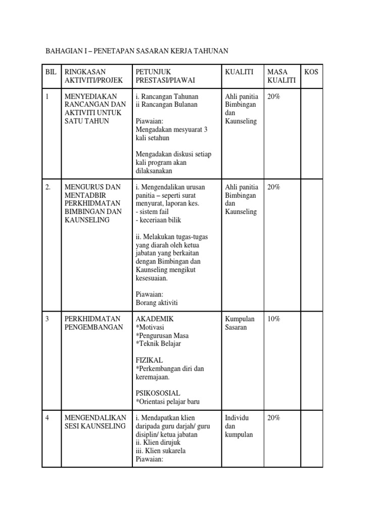 Contoh sasaran kerja tahunan guru akademik. Hasil sasaran kerja tahunan 2013. Petunjuk prestasi kualiti masa kos. 4 3 1 4 3 contoh borang sasaran kerja tahunan yang telah lengkap diisi adalah seperti di kembaran iii. Nak sampai level guru besar tak pernahlah nak mimpinya saya ni.