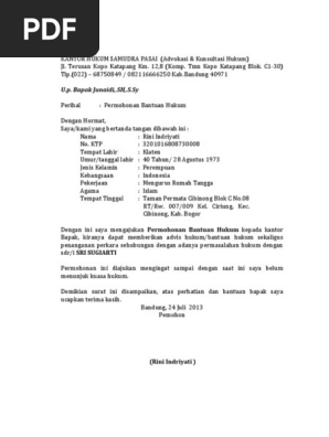 Contoh Surat Permohonan Bantuan Hukum Ke Lbh