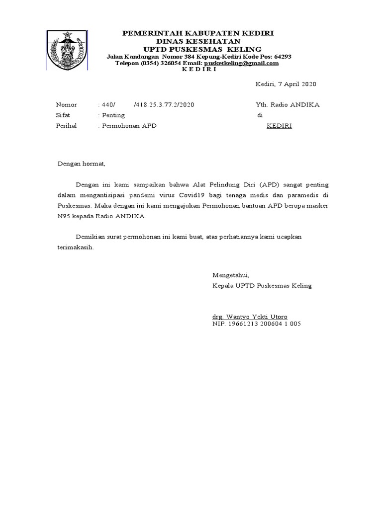 Contoh surat permohonan bantuan masker ke dinas kesehatan. 15 contoh surat permohonan rekomendasi paling lengkap ada banyak contoh surat yang masih dipergunakan sekarang ini baik itu untuk kepentingan pribadi maupun untuk kepentingan kelompok. Admin blog kumpulan surat penting juga mengumpulkan gambar gambar lainnya terkait contoh surat permohonan fogging ke dinas kesehatan dibawah ini. Pada waktu sekarang ini yang akan kami bahas yakni tentang contoh surat permohonan bantuan. Related posts to contoh surat permintaan masker ke dinas kesehatan.