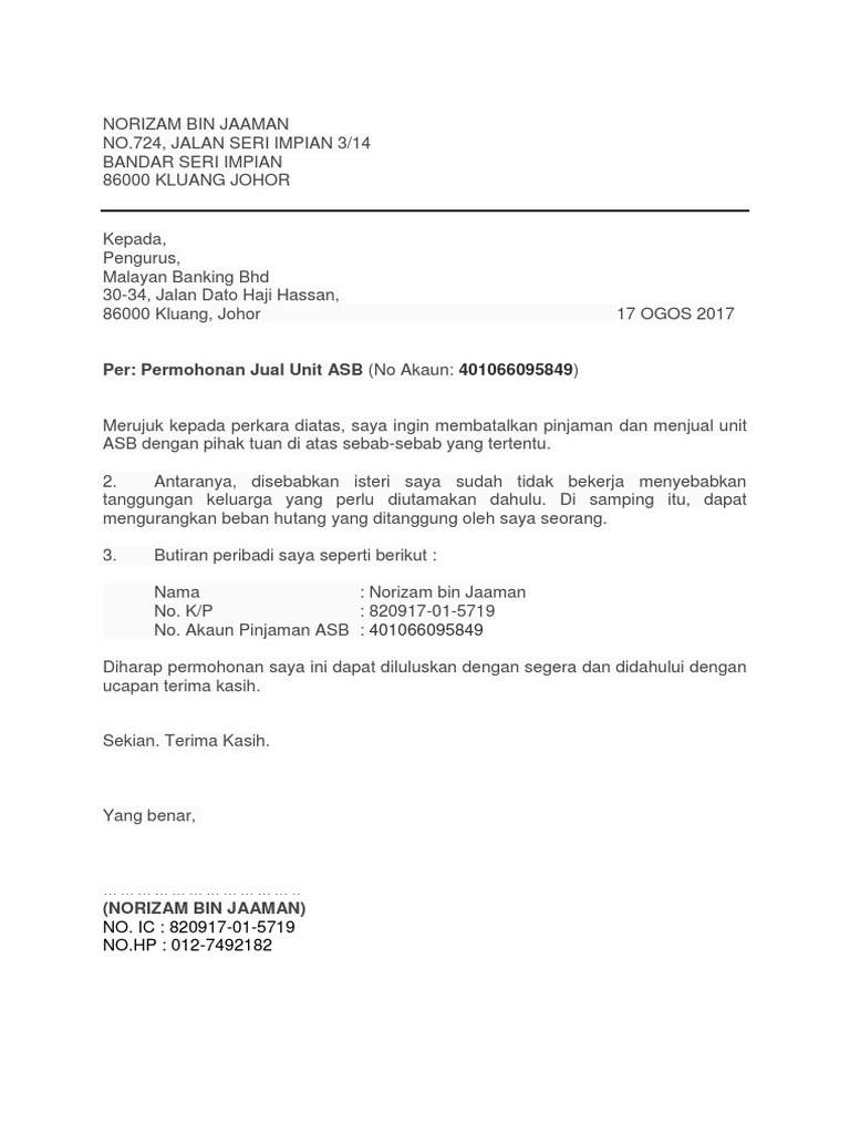 Tak banyak yang bagi dengan jelas so aku kumpul2 dan buat versi aku sendiri. Sample letter asb loan cancellation. The collection that comprising chosen picture and the best amongst others.