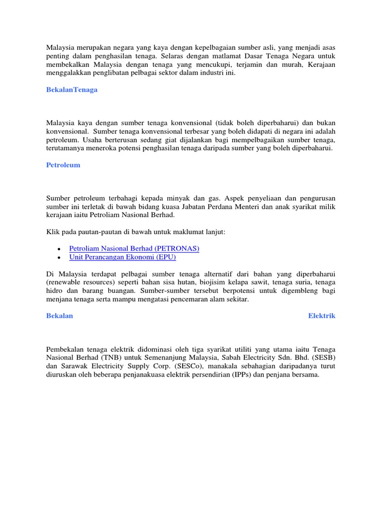 Sumber sumber ini diperoleh dengan banyaknya melalui sumber asli yang bertebaran di seluruh pelusuk negeri di malaysia. Antaranya adalah solar angin air pasang surut dan geothermal. Kependudukan tenaga buruh mengikut kepelbagaian. In response to the announcement of the conditional movement control order cmco for kuala lumpur putrajaya selangor nilai dan seremban kindly note that operations for meter readings and delivery of tnb physical bills will continue as usual.
