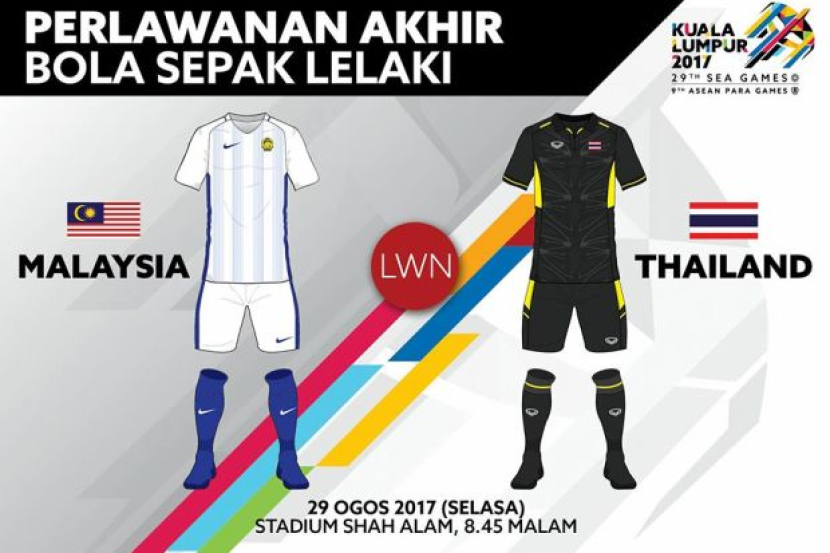 Perlawanan dalam acara bola sepak ini akan berlangsung bermula 14 ogos hingga 29 ogos 2017. Jadual sukan sea 2017 isnin ahad 20 ogos 2017 9 13 pm. Kumpulan a malaysia myanmar singapura laos brunei. Pertemuan kedua dua pasukan itu berlangsung setelah saingan kumpulan tamat dan dua pasukan teratas kumpulan a dan kumpulan b berjaya ke peringkat separuh akhir.