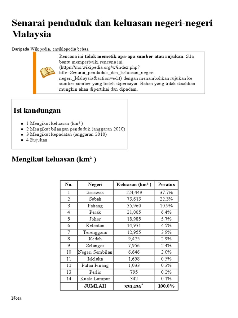 Keluasan malaysia 2017 xls paling. Ada juga negeri negeri di malaysia yang tidak mempunyai sultan. Minggu ini bulan ini category popular. Negeri keluasan km peratus 1.
