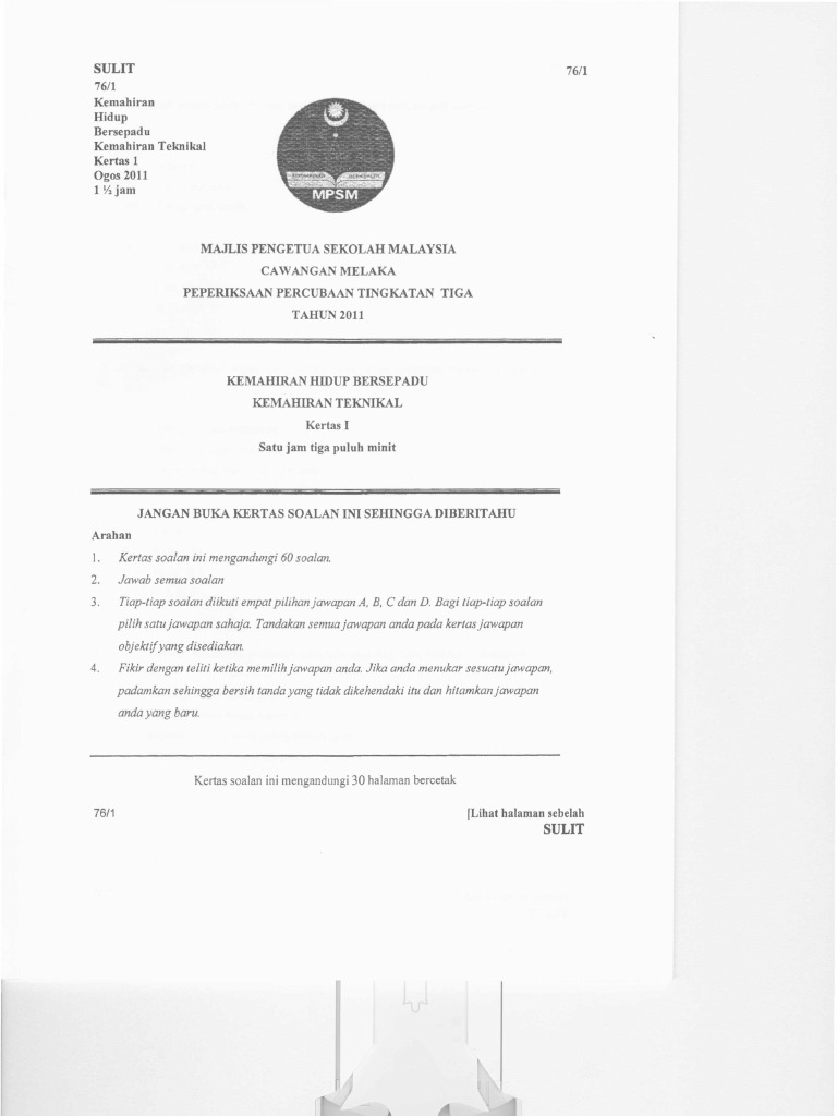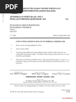 Kelantan pmr trial paper 2011. Kemahiran hidup bersepadu jangan buka kertas soalan ini sehingga diberitahu peperiksaan percubaan bers penilaian menengah rendah 78 1 kemahiran hidup bersepadu pilihan 3 1 peperiksaan percubaan pmr 2005 dengan kerjasama pilihan 3 pertanian satu jam tiga puluh minit ama 2012. Kertas soalan ini mengandungi 60 soalan. Kemahiran teknikal pilihan 1 76 01 jumlah calon.