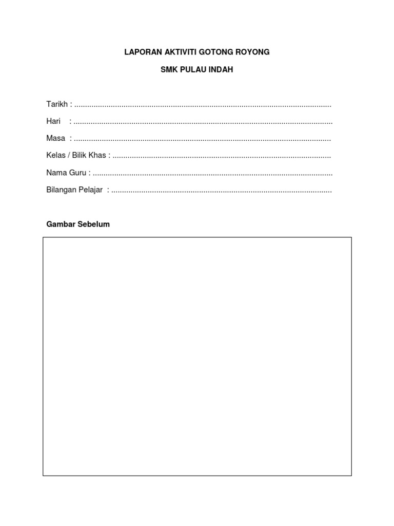 Laporan aktiviti gotong royong laporan aktiviti gotong royong source. Setiap guru kelas bertanggungjawab mengawal aktiviti murid. Rencana dan laporan kegiatan gotong royong sd berikut ini adalah download gratis rpp dan silabus kurikulum 2013lengkap untuk semua jenjang yang merupakan kumpulan file dari berbagi sumber wallpaper tentang rencana dan laporan kegiatan gotong royong sd yang bisa bapak ibu gunakan dan diunduh secara gratis dengan menekan tombol download biru dibawah ini. Tujuan sebenar gotong royong ini diadakan adalah untuk perpaduan dan semangat saling antara satu sama lain.