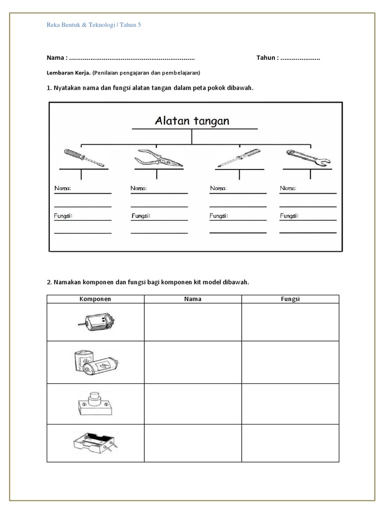 Untuk memudahkan para pendidik dan murid versi words dan pdf telah disediakan dalam bentuk. 2 2 1 membaca dan memahami manual. 2 2 memasang dan membuka kit model berfungsi secara elektromekanikal berpandukan manual. Rbt tahun 5 presented by cikgu amin for rbt tahun 5 kit model kereta asas teknologi jenis alatan tangan alatan tangan nama dan fungsi alatan tangan yang diperlukan untuk memasang dan membuka kit model.