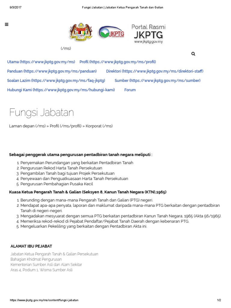 Bahagian pengurusan dan perundangan tanah bppt bahagian harta tanah persekutuan bhtp bahagian pengambilan tanah bpt bahagian pembahagian pusaka bpp bahagian hakmilik strata dan stratum bhss bahagian pengurusan ict pentadbiran tanah bpict pt bahagian penguatkuasa dan hasil persekutuan bphp unit petugas khas upk unit integriti. Pejabat pengarah tanah dan galian wp putrajaya aras g block 2 menara seri wilayah presint 2 pusat pentadbiran kerajaan persekutuan 62100 putrajaya. Pilihan bahasa english bahasa malaysia pejabat pengarah tanah dan galian pulau pinang paras 3 21 dan 22 10000 komtar pulau pinang malaysia.