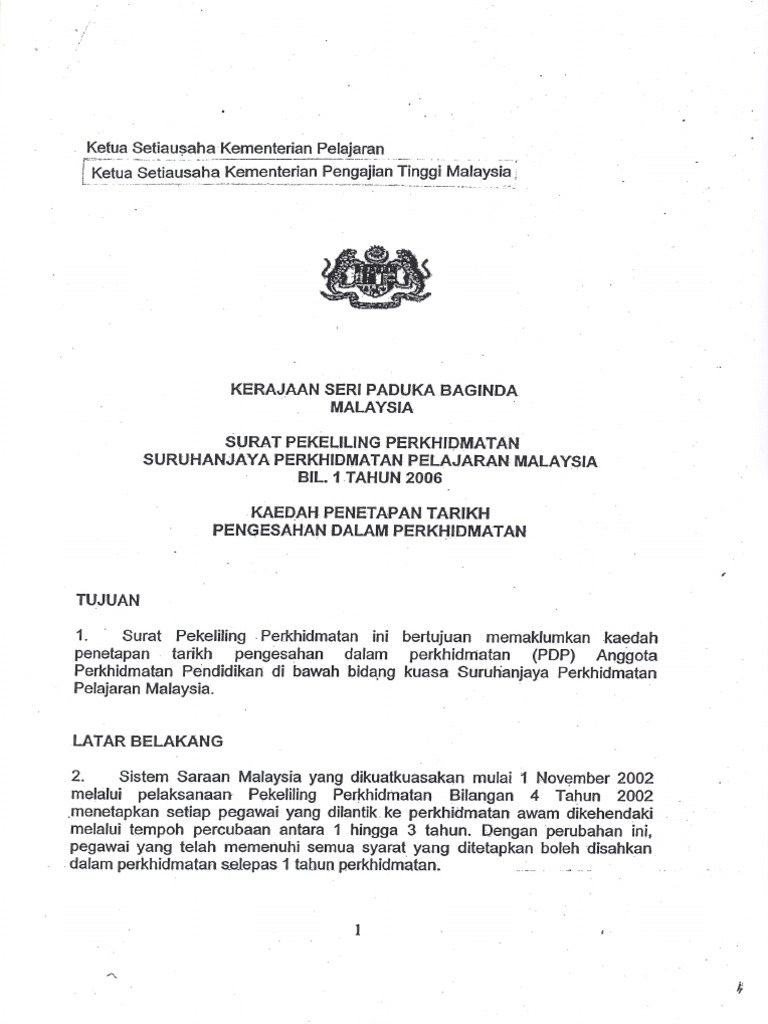 Surat pekeliling perkhidmatan suruhanjaya perkhidmatan pelajaran bilangan 1 tahun 2006 kaedah penetapan tarikh pengesahan dalam perkhidmatan. Tatacara pengesahan dalam perkhidmatan tujuan 1. Pekeliling suruhanjaya perkhidmatan pelajaran bilangan 2 tahun 2010 tatacara pengesahan dalam perkhidmatan. Pada masa ini spp melaksanakan urusan perkhidmatan bagi app.