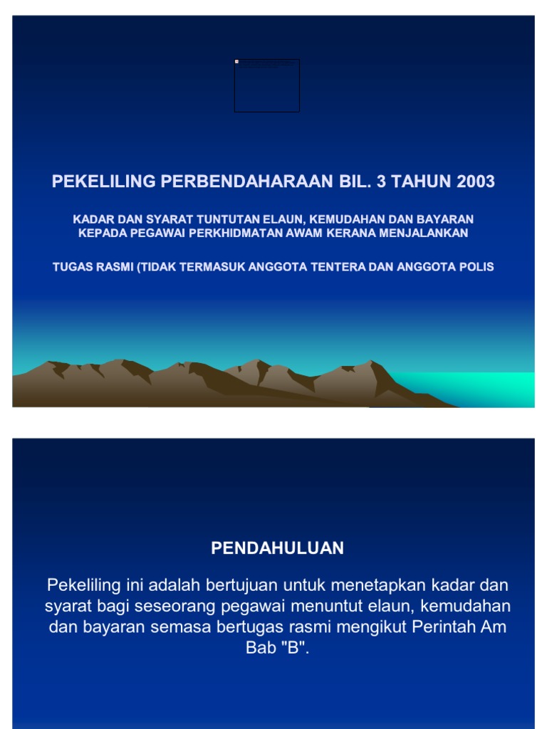 3 tahun 2005kadar dan syarat tuntutan elaun kemudahan dan bayaran kepada pegawaiperkhidmatan awam semasa berkursuskecuali kursus pra perkhidmatanputrajaya14 disember 2005. Surat arahan perbendaharaan ruj. 2 9 2007 9 58 09 am. Pekeliling ketua setiausaha.