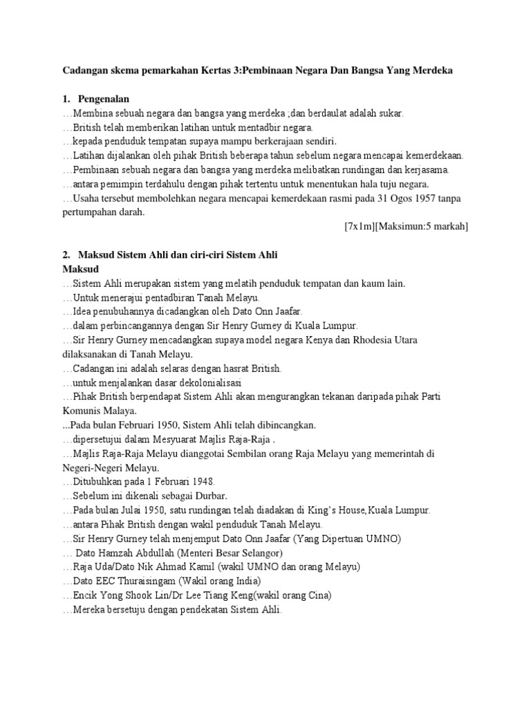 Berikut dikongsikan contoh soalah dan cadangan jawapan pembinaan negara dan bangsa yang merdeka bab 5 kertas 3 sejarah. Pembinaan negara dan bangsa malaysia ke arah kemunculan negara malaysia yang berdaulat pengenalan malayan union di tanah melayu pada tahun 1946 telah menunjukkan penyatuan masyarakat terhadap penjajahan british. Kertas 3 3 jam sahaja soalan contoh 1 jawapan tema tajuk 11 2. Pembinaan negara dan bangsa yang merdeka tema tajuk 11 1 pembinaan negara dan bangsa yang merdeka soalan sistem ahli yang diperkenalkan oleh british di tanah melayu telah men.
