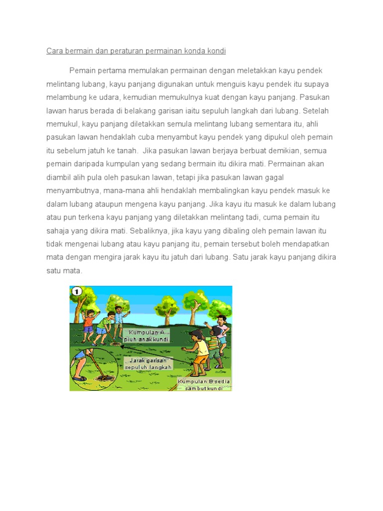 Permainan tradisional konda kondi. Tutorial 4 permainan tradisional konda kondi disediakan oleh. Ada di antara permainan ini yang sekarang tidak dimainkan lagi tetapi hanya diketahui oleh ibu bapa dan datuk nenek kita sahaja. Hanya dua batang kayu yang berlainan saiz diperlukan. Walaubagaimanapun penggunaan kayu ini boleh mengikut keselesaan pengguna itu sendiri.