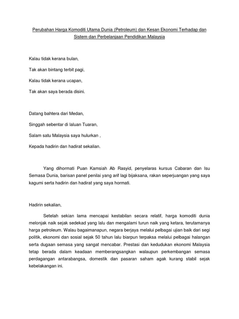 Perubahan harga komoditi utama dunia petroleum dan kesan ekonomi terhadap dan sistem dan perbelanjaan pendidikan malaysia kalau tidak kerana bulan tak akan bintang terbit pagi kalau tidak kerana ucapan tak akan saya berada disini.
