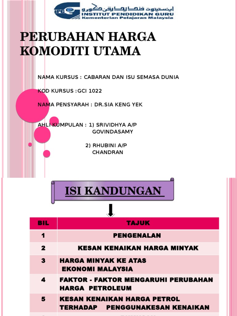 1 ppismp matematik zulhaikal amalia syarafanamaksud komoditi. Ini bermaksud harga yang kita dapat lihat sekarang sedikit sebanyak lebih mirip dengan harga sebenar 1 liter minyak di seluruh dunia. Perubahan kapasitas produksi setiap negara berikut konflik geopolitik yang kadang kadang menerpa menjadi faktor faktor yang bermain dalam pembentukan tren harga minyak dunia. Ketara harga komoditi pada tahun 2008 dan 2011.