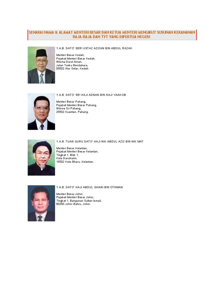 Pengarah perbadanan taman negara. Berikut merupakan senarai menteri besar dan ketua menteri yang terkini selepas pilihan raya umum malaysia 2018 undian bermula 9 mei 2018. 10 yab datuk seri utama haji sulaiman bin md ali ketua menteri melaka pejabat ketua menteri melaka tingkat 4 suite blok bendahara seri negeri hang tuah jaya. Hasni mohammad who took office on 28 february 2020.