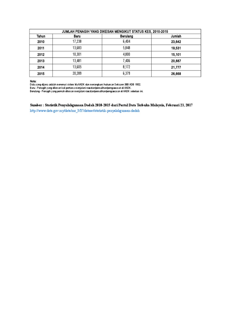 Statistik jenayah malaysia 2018 pengenalan penerbitan statistik jenayah malaysia 2018 merupakan penerbitan pertama jabatan yang memaparkan statistik bagi lima bidang jenayah iaitu jenayah indeks dadah rasuah alam sekitar dan jenayah lain. Ini kerana terdapat penagih yang menggunakan lebih daripada satu jenis dadah. Ismail mohd fauzi mohd jani abdul hamid jaafar fariza md sham zainab ismail doris padmini a p selvaratnam noriah mohd ishak khairil awuar. Manakala data per individu merujuk kepada data penagih yang dikira sekali sahaja dalam tempoh lima 5 tahun.