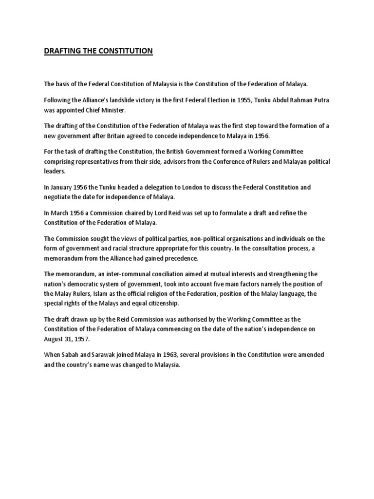 This Committee Was Set Up To Formulate The Structure Of A New Country Malaysia Constitution