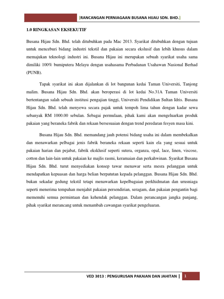 Visi dan misi perusahaan butik baju muslim. Memenuhi keperluan dan kehendak manusia pengguna mengikut peredaran zaman dan mengikut undang undang islam. Memberikan layanan jasa produksi pakaian yang berkualitas dan menjalin kerja sama saling menguntungkan 3. Visi misi objektif.